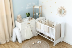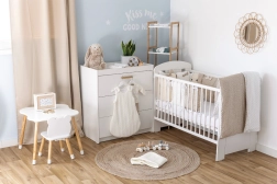 A bézs és fehér árnyalatok modern megjelenéssel párosulva nyugodt, harmonikus hangulatot visznek a gyerekszobába.