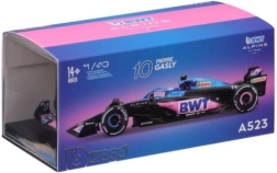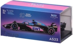 Ikonikus csapatszínek: kék, rózsaszín és fekete, hű BWT, ALPINE és Castrol szponzorlogók és aerodinamikus formák – ez a modell a Alpine A523 (2023-as szezon) valós versenygépének élethű megjelenését hozza. 1:43 méretarányban bármely vitrinen remekül mutat.