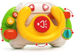 Ez a színes gyermek kormány támogatja a fantáziát, az érzékszervi fejlődést és a kézkoordinációt. A gyerekek jobbra-balra forgathatják a kormányt, a kulccsal „beindíthatják” a motort, és bekapcsolhatják az irányjelzőket valódi hangokkal. A vidám dallamok és fényhatások útközben és otthon is lekötik a kis sofőrök figyelmét.
