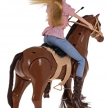 Ez a látványos szett összeköti a babák és a lovak világát – ideális a kis lovaglásrajongóknak. A babának mozgatható karja, lába és feje van, valamint gyönyörű, hosszú haja. A ló 3× AA elemmel működik (a csomagban), és tud elindulni előre, fejével mozogni és nyeríteni, így a játék maximálisan élethű.