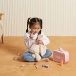 Ajándékozzon a kis sminkmesternek egy saját szépségsarkot. A stílusos textil táska egyben tartja az összes fa „kozmetikai” kiegészítőt, és lehetővé teszi, hogy bárhová magával vigye. A játék fejleszti a finommotorikát, a képzeletet és a szociális készségeket a szerepjáték során.