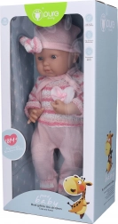 Cuki baba puha kezeslábasban, 40 cm-es méretben, ideális minden kicsi anyukának. Tökéletes játék a gyermek fantáziájának és készségeinek fejlesztésére.
