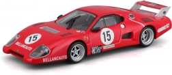 Ez a részletgazdag FERRARI 512 BB (II. sorozat) 1981 modell 1:43-as méretarányban a Bburago Racing sorozatból származik. Hűen adja vissza az agresszív sziluettet, a nagy hátsó szárnyat és az ikonikus BELLANCAUTO feliratokat. A fém karosszéria minőségi fényezéssel és éles vonalakkal kölcsönöz valósághű megjelenést még közelről is.