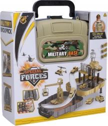 Kalandos készlet kis hadseregrajongóknak: katonai állomás pályával, lifttel, darúval, heliporttal és 2 autóval praktikus vállpántos hátizsákban. Ideális otthonra és útra is, képes útmutatóval az egyszerű összeszereléshez.