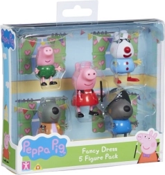 A szett Peppát, George-ot, Dannyt, Pedrót és Wendyt tartalmazza színes jelmezekben, amelyek végtelen történetekre és szerepjátékra inspirálnak.