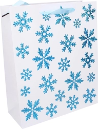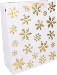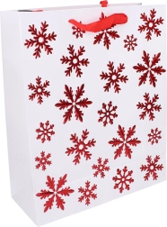 Stílusos, L méretű karácsonyi ajándéktáska 31 × 42 × 12 cm-es méretben. Ideális nagyobb ajándékok csomagolásához, erős fülekkel és minőségi papírral a könnyű és elegáns átadásért. Elérhető 4 féle karácsonyi motívummal.