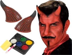 A készlet ideális Halloweenre, farsangra vagy tematikus bulikra. Ezzel a szettel kísérteties, mégis hatásos megjelenést hozhatsz létre, amely felkelti a figyelmet. A szarvak és festékek mellett művért is tartalmaz az igazán ördögi smink befejezéséhez.
