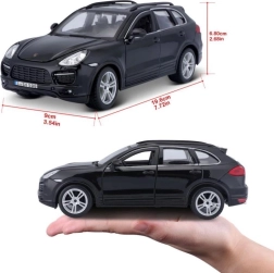 Ez a Porsche Cayenne Turbo modell a neves Bburago márka része, amely kiváló minőségű kidolgozásáról és magas szintű részleteiről ismert. Fém és műanyag elemekből készült, ami biztosítja a hosszú élettartamot, szilárdságot és autentikusságot.