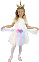 Változtasd gyermekedet varázslatos unikornissá ezzel a színes jelmezzel, amely tartalmaz egy tüllszoknyát és egy unikornisos hajpántot. Ez a szett tökéletes azoknak a gyerekeknek, akik szeretnének mesés kalandokat átélni játék közben. A szoknya színes tüllel és csillagmintás díszítéssel készült, rugalmas derekának köszönhetően pedig könnyen igazodik.