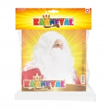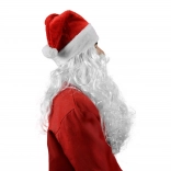 Ez a paróka hosszú fehér szakállal és sapkával hagyományos mikulásos megjelenést kölcsönöz.