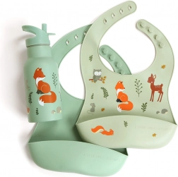 - 2× szilikon előke (1× erdei állatmintával, 1× egyszínű)