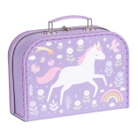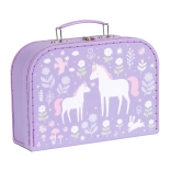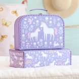 Az A Little Lovely Company két dekoratív bőröndből álló szettje játékos dizájnt kínál egyszarvúakkal, szivárvánnyal és virágokkal lila alapon. A könnyű, mégis masszív szerkezet ellenálló kartonból, minőségi varrással hosszú élettartamot és kényelmes hordozást biztosít.