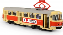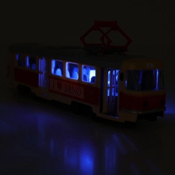 Stílusos gyerek T3 villamos BRNO motívummal, amely valósághű városi közlekedési élményt nyújt. Az ajtók kinyitásakor megszólalnak a cseh megállóhely-bemondások, és felgyullad a kék fény. A 28 cm hosszú modell szabadon fut, nyitható ajtókkal rendelkezik, és tartós műanyagból készült. A csomag tartalmaz 3× LR44/AG13 elemet.
