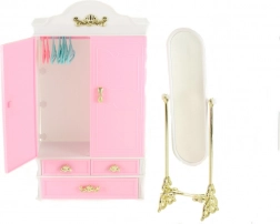 Adja hozzá gyermeke játékaihoz a Glorie ruhásszekrényt és tükröt, amely átlátható dizájnnal és funkcionalitással érkezik a babák számára. A gyerekek élvezhetik a ruhák tárolását a praktikus vállfáknak köszönhetően, míg a tükör eleganciát kölcsönöz a játékszínnek.