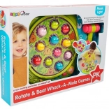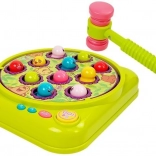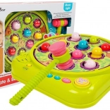 Amikor a lemez leáll, a játék véget ér. Számold meg a találatokat, és add át a kalapácsot a következő játékosnak. Több eltalált vakond dönt a győztesről! Gyorsabb tempó nagyobb kihívást jelent. A teljes légkört vidám zene kíséri.