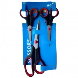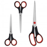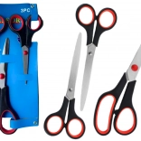 Praktikus, három darabból álló univerzális irodai ollókészlet mindennapi használatra otthon, irodában és műhelyben. A készlet 20 cm, 14 cm és 12,5 cm méreteket tartalmaz különféle feladatokhoz. Az éles, rozsdamentes acél pengék simán és pontosan vágnak, a műanyag, ergonomikus nyél pedig kényelmes fogást biztosít hosszabb munka során is. A készlet korrózióálló, és rendelkezik CE tanúsítvánnyal.