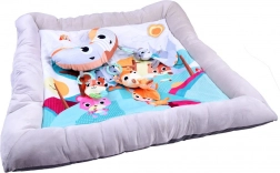 Puha és kényelmes játszószőnyeg tornával, amely biztonságos és ingergazdag helyet kínál játékhoz és pihenéshez. Tartalmaz érzékelést fejlesztő hatású függő játékokat, biztonságos tükröt, puha, megemelt széleket és támasztó párnát a baba kényelméért. Támogatja a finom- és nagymozgások fejlődését, a kéz–szem koordinációt és az érzékszervi észlelést.