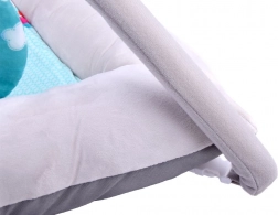A párnázott szélek védik a guruló babát, a puha támasztó párna pedig megtámasztja a fejecskét vagy a hason fekvés közbeni tornát.