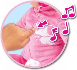 A pocak enyhe megnyomására nevetés, gügyögés, cuppogás és megnyugtató altatódal hallható. Tökéletes az elaltatáshoz és a nappali játékhoz is.
