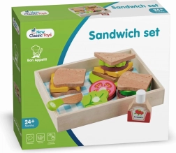 A doboz mindent rejt, ami egy ebédhez vagy piknikhez szükséges. Sajttal, kolbásszal, paradicsommal, fejes salátával és paradicsomketchuppal különféle ízletes szendvicseket készíthetsz. Ez a készlet nemcsak szórakoztató, hanem biztonságos választás is a gyermeked számára. Az élelmiszerkészlet kiegészítőként is használható gyerek konyhákhoz. 2 éves kortól ajánlott. A játék méretei: 247 × 198 × 40 mm.