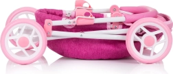 A Chipolino Daisy mély babakocsi Pink linen árnyalatban minden kis gondoskodót elbűvöl. A fém váz és a textil huzat kombinációja egyszerre könnyű és stabil, így a kocsit könnyű kezelni. Az állítható kupolának és a puha betétnek köszönhetően minden baba vagy plüss maximális kényelemben utazik.