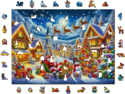 A WOODEN CITY Fa puzzle Santa ünnepi útja egy egyedülálló kirakó különleges alakú elemekkel, amelyek rendkívül szórakoztatóak, és szokatlan formáik miatt nagyobb kihívást jelentenek.