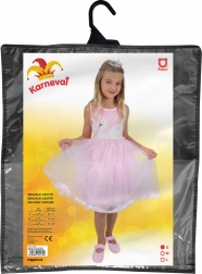 Bűvöld el a kis hercegnőt ezzel a finom, hattyú témájú jelmezzel. A rózsaszín ruha pelyhes tüllszoknyával készült, melyet sziromdíszek és fehér gyöngyök ékesítenek, szatén alsószoknyája gyönyörű tartást ad, a felsőrész pedig hattyú díszítést kapott. Tökéletes farsangra, ünnepségekre és jelmezes játékokra.
