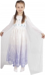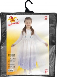 Stílusos lány jelmez, a téli királynő mesés megjelenését hozza el a fehér szín, a lila árnyalatok és a csillogás kombinációjával. A felsőrész flitterekkel díszített, a deréktól tüllszoknya terül szellősen finom mintával, a teljes összhatást pedig a díszített uszály emeli ki.