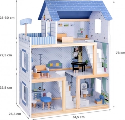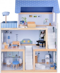 Kék fa babaház + bútorok, 3 szint ZA5273