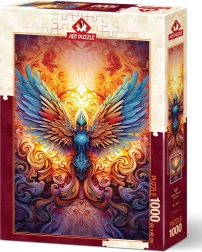 Merüljön el a főnix lenyűgöző, ragyogó színekben pompázó motívumában. Ez a minőségi, 1000 darabos puzzle nagyszerű kirakó élményt nyújt, és elkészülve otthona dísze lehet. A kész kép kb. 48 × 68 cm-es mérete ideális keretezéshez.