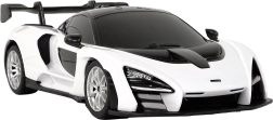 Fedezze fel a sebességet és a stílust a MCLAREN Senna RC modellel elegáns fehér színben. A sötétített ablakok és a részletes karosszériavonalak kiemelik a prémium megjelenést. A gumírozott gumiabroncsoknak köszönhetően a modell magabiztosan mozog sima padlón és enyhén egyenetlen felületen is.