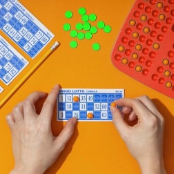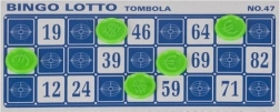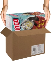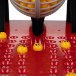 - Teljes készlet az azonnali játékhoz: Tartalmaz sorsoló gépet, számozott golyókat, kártyákat és zsetonokat.