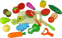 - Gyerekkonyhai készlet, vágható fa élelmiszerek