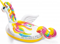 A Mega unikornis felfújható sziget stílusos és tágas úszó, amely minden nyári bulin a figyelem középpontjába kerül. A 251 × 163 × 145 cm-es méretek bőséges helyet kínálnak a kényelmes pihenéshez és a közös szórakozáshoz. A két légkamrának köszönhetően stabil és biztonságos, míg a masszív fogantyúk megkönnyítik a felszállást és a vízen való mozgatást.
