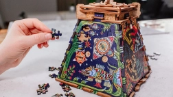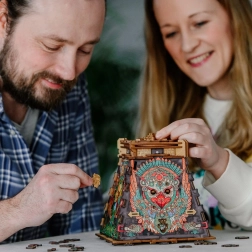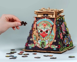 Engedd, hogy magával ragadjon az azték piramis titka. Több mint 200 darabbal ez a fa puzzle rejtvények felfedezésére és logikai feladatok megoldására hív. A mechanikus zárak megnyitása egy rejtett helyet tár fel, ahová személyes üzenetet vagy más apróságot helyezhetsz. Steve Simpson és Joaquín Nava illusztrációi révén a puzzle nemcsak kihívás, hanem egyben műalkotás is.