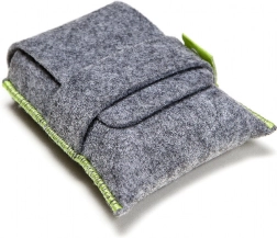 Szürke textilzsebecske lime zöld varrással, amely ideális az építőjáték könnyű szállítására. A stílusos és funkcionális kivitel megóvja a darabokat utazás közben.