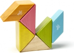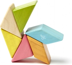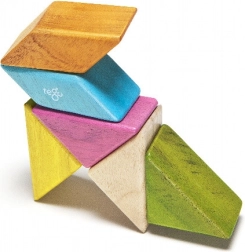 A készlet színes, fából készült háromszög alakú blokkokat tartalmaz, melyek a mágneses kapcsolódás révén könnyen összekapcsolhatók. A gyermek különböző formákkal és színekkel játszhat, ami a kreatív gondolkodását fejleszti.