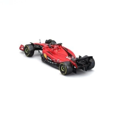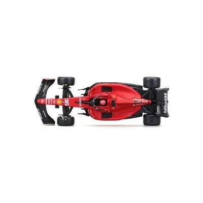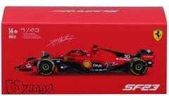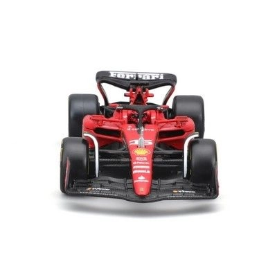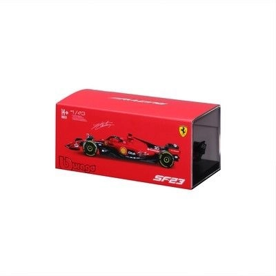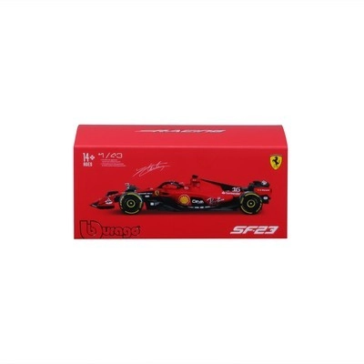 A FERRARI SF23 hű színvilága szponzori logókkal, halo védelemmel és precíz szárnyakkal a valódi monopostó látványát adja vissza.