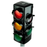 Egyszerű összeállítás három részből – jelzőlámpa, talp és két cső. A stabil állvány biztosan a helyén marad.