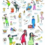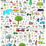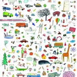 Ez a nagy képeskönyv ideális segédeszköz óvodásoknak és alsó tagozatos gyerekeknek. A színes, „olvasmányos” illusztrációk segítségével a gyerekek megtanulják felismerni a tárgyakat, megnevezni őket, és fokozatosan megjegyezni a nyomtatott alakjukat is. A könyv játékos formában fejleszti a szókincset, és támogatja az első lépéseket az olvasásban és írásban.