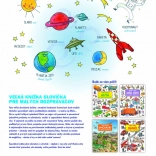 A tartalom úgy lett kialakítva, hogy a gyermekkel együtt „nőjön”: a legkisebbek a színeket és alapfogalmakat gyakorolják, a nagyobbak elsajátítják az első olvasást és a nyomtatott betűk írását. Része továbbá rövid távú memóriafejlesztő játékok és képek alapján történő mesealkotás – a fantáziának semmi sem szab határt. Bónusz az angol szavak fordítása, így a tanulás idegen nyelven is folytatódhat. A könyv szlovák nyelvű változata.