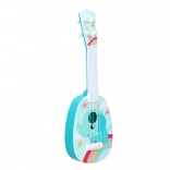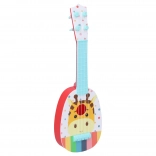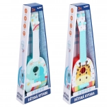 Ez a gyerek gitár afrikai állatok motívumával ideális kis kezdőknek. Négy műanyag húrral és 37 cm hosszúsággal rendelkezik, ami tökéletes választás a kényelmes fogáshoz és játékhoz.