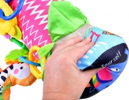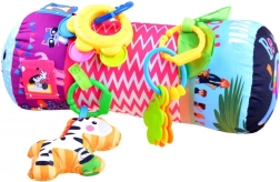 A hengert lehet használni stabilizátorként is az autósülésben, babakocsiban vagy otthon. Vidám színei és mintái felkeltik a gyermek figyelmét, és stimulálják látási, hallási és tapintási érzékeit. A henger méretei 42 x 16 x 16 cm, és könnyen karbantartható anyagokból készült.< /p>