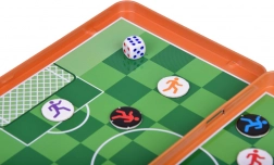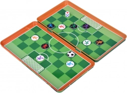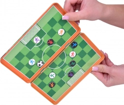 A mágneses foci ideális választás utazási szórakozás céljából. Ez a játék kompakt méretet, fém táblát és mágneses figurákat kínál a könnyű és kényelmes játék érdekében. A játékosok felváltva lépnek, mozgatják figuráikat a pályán, átugrának az ellenfélen, és büntetőterületről próbálnak gólt szerezni. Az a játékos, aki először ér el 3 gólt, nyer. Minden korosztály számára alkalmas, akik szeretik a focit.