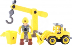 A készlet része a valósághű rakodó és daru, amelyek csavarozhatók, egy munkás figura a szerepjátékhoz, valamint kiegészítők, például a kuka. A szett praktikus dobozban érkezik, és remek ajándék 3+ éves gyerekeknek.