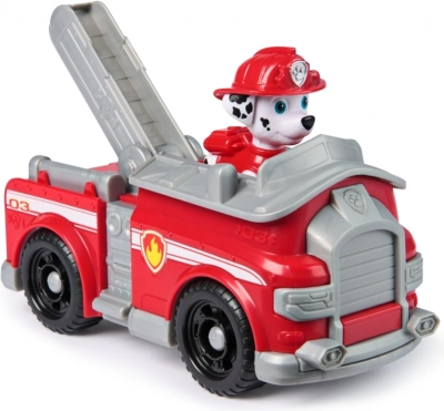 Marshall piros tűzoltóautója a szerethető dalmata hőssel ideális a mentőakciók kis rajongóinak. A gyerekek könnyedén beültethetik a figurát a fülkébe, és már indulhat is a segítségnyújtás a simán gördülő kerekekkel és a kihúzható létrával. A sorozatból ismert, autentikus elemek támogatják az Adventure Bay világában játszódó kreatív történeteket.