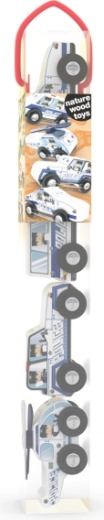 Fedezd fel a játék örömét természetes fából készült rendőrautókkal. Ez a játék serkenti a gyermeki fantáziát, és támogatja a szerepjátékot valamint a történetmesélést.