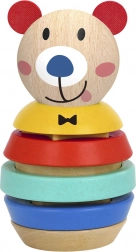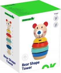 A TOOKY TOY aranyos, mackó alakú fa rakosgató tornya különböző méretű, színes formáival és biztonságos kivitelével hívja fel magára a figyelmet. 12 hónapos kortól a gyerekek fejlesztik finommotorikájukat, kéz–szem koordinációjukat, valamint a színek és formák felismerését. A sima fa éles élek nélkül és a nem mérgező festékek biztonságos és örömteli játékot garantálnak.