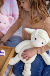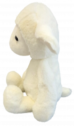 A bárány kellemes tapintású plüssből készült, ideális bújáshoz és ölelgetéshez.
