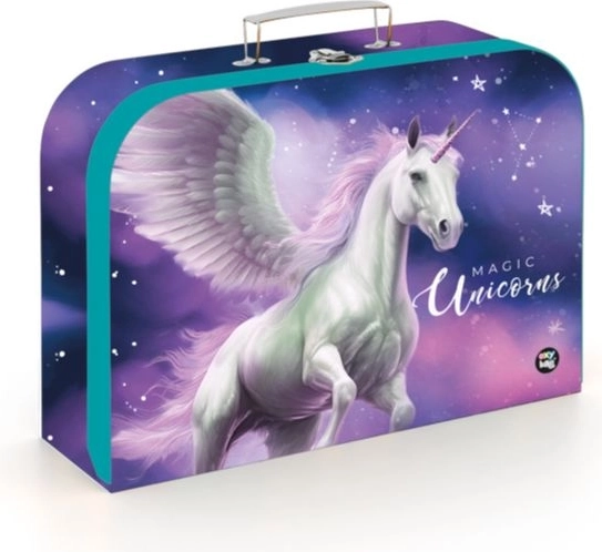 A gyermek laminált bőrönd Pegas elegendő helyet kínál az A4-es méret tárolására, ami ideális iskolai füzetek, könyvek vagy rajzok számára. A masszív fogantyúnak köszönhetően a bőrönd könnyen hordozható, ami megkönnyíti a kezelést.